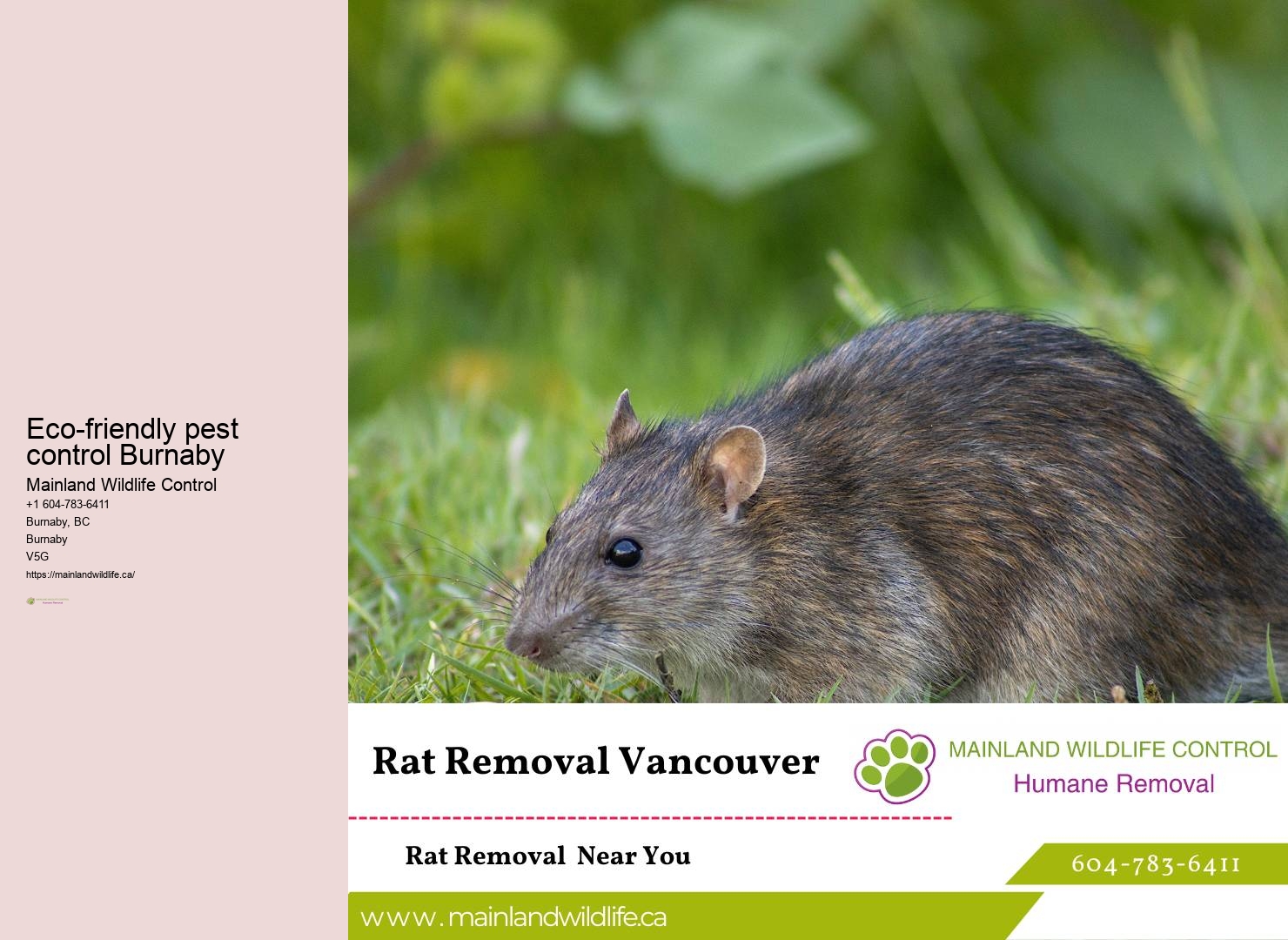 Mainland Wildlife Control prioritizes the planet's health by integrating eco-friendly methods into their pest control strategies. It's not just about eliminating them but doing so in a way that's safe for your family and eco-friendly. It's a game-changer, especially if you're concerned about the impact of chemicals on your surroundings. Eco-friendly pest control Burnaby   Eco-friendly pest control Burnaby   But don't worry; we're prepared for that.